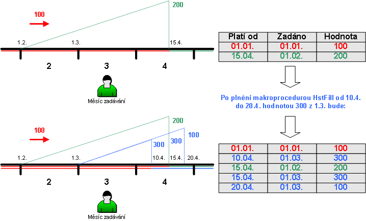 Procedura plní historickou tabulku tak, že od datumu DateFrom do DateTo ukládá hodnotu Value tak, aby nedošlo ke zničení předchozích informací a přesto systém následně počítal s novými hodnotami. Použijete-li DateTo nulový, půjde historie do nekonečna.