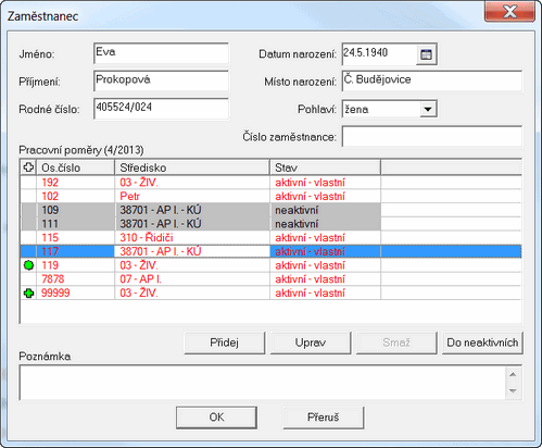 { Základní data zaměstnance jsou v pořádku uložena, projdeme změny PP }